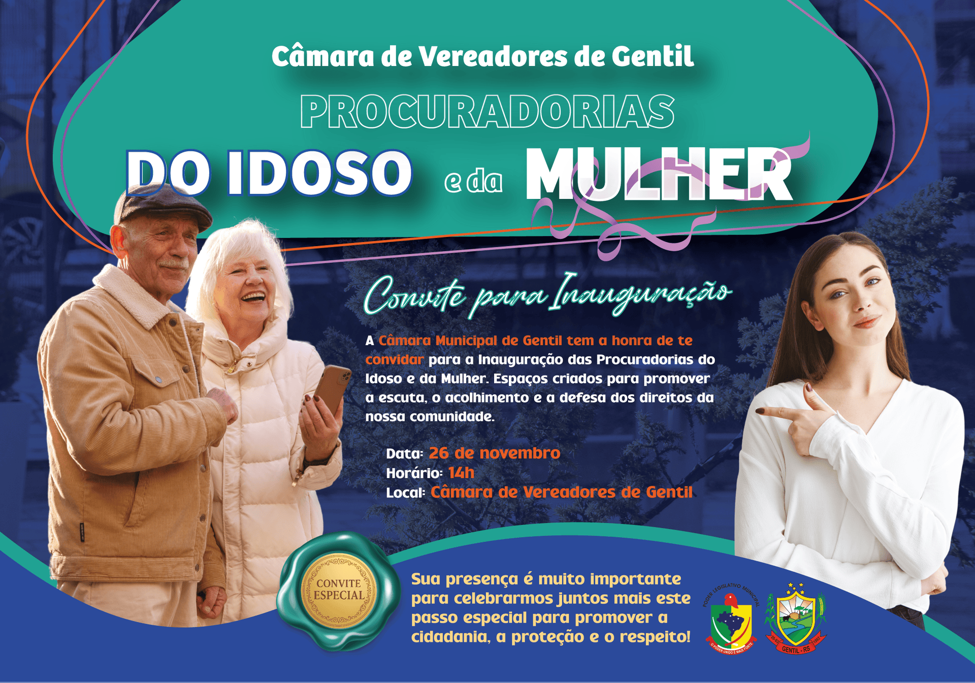 Câmara de Gentil convida para inauguração das Procuradorias do Idoso e da Mulher
